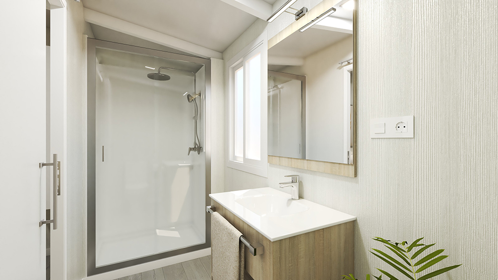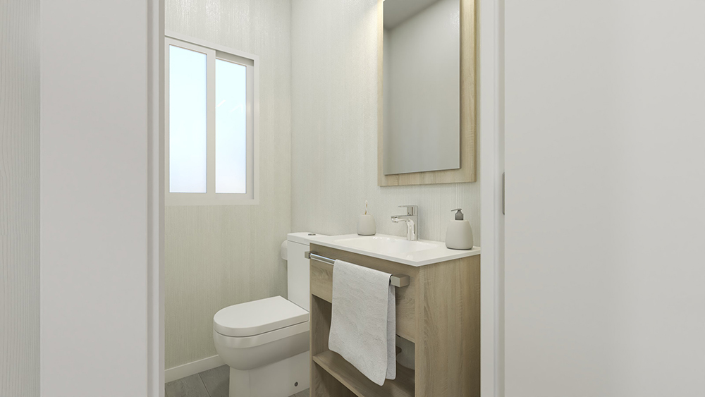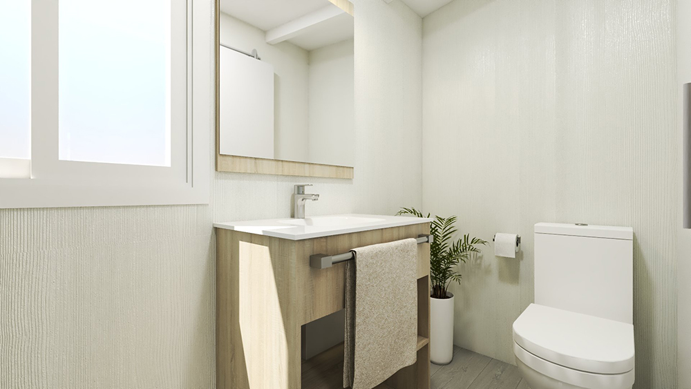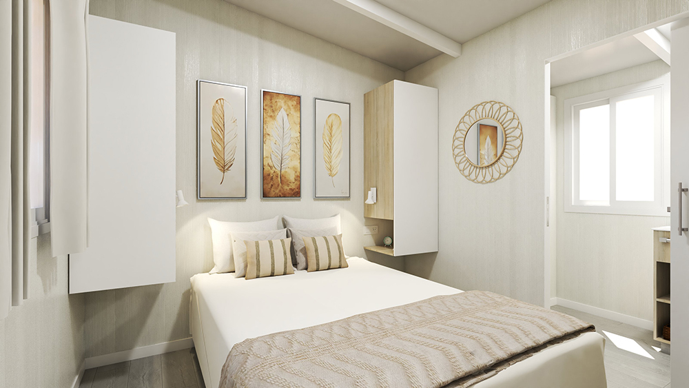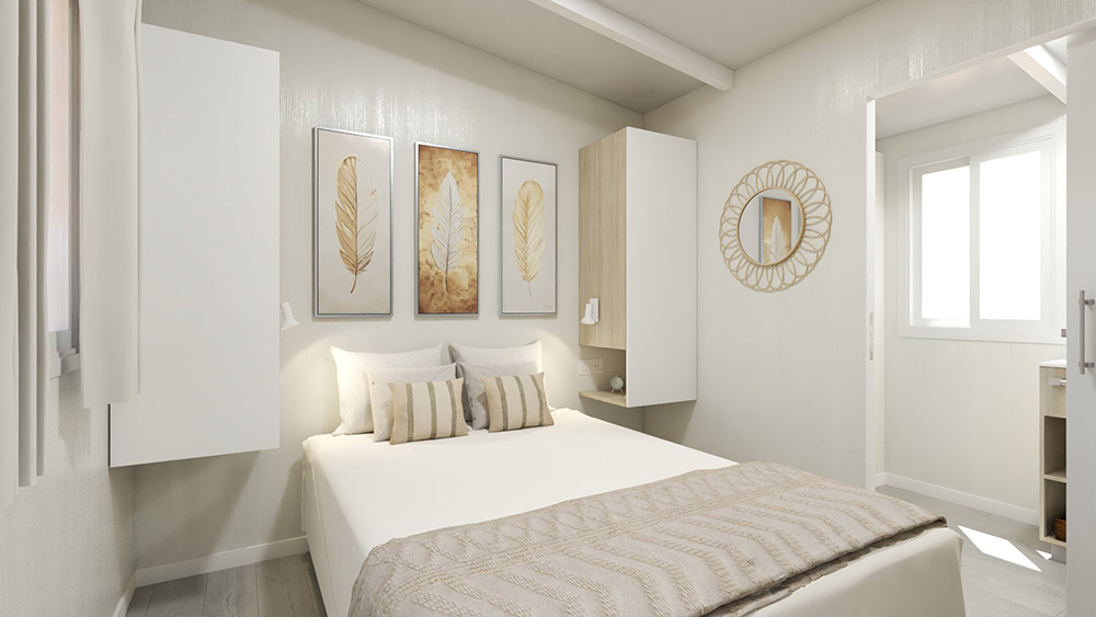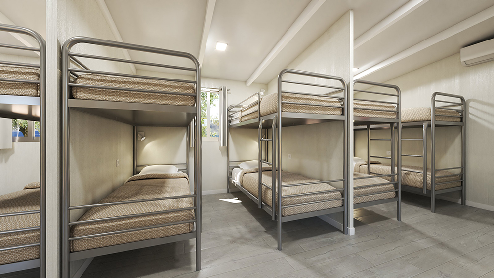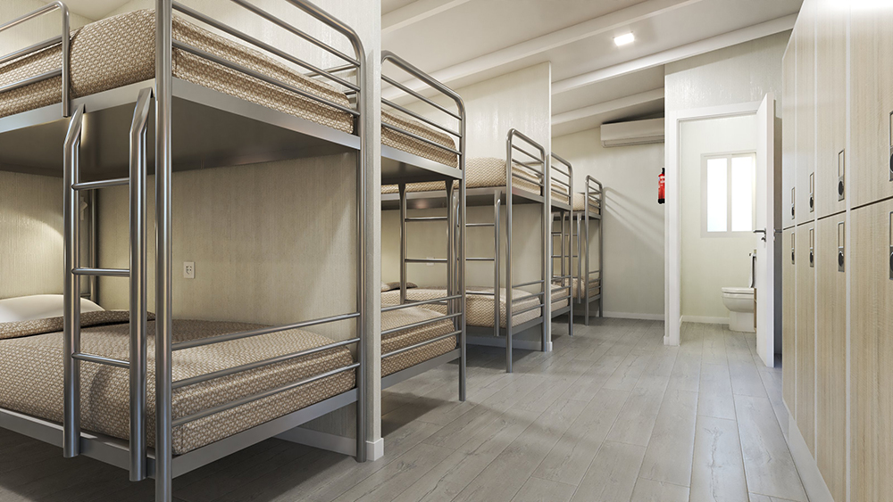 El albergue C cuenta con una distribución ideal para el alquiler de estudiantes con monitor. Una zona común diáfana con 6 literas y aseo, y una segunda zona privada con dormitorio con baño en suite para. Ideal para mantener la privacidad pero estar al lado.
