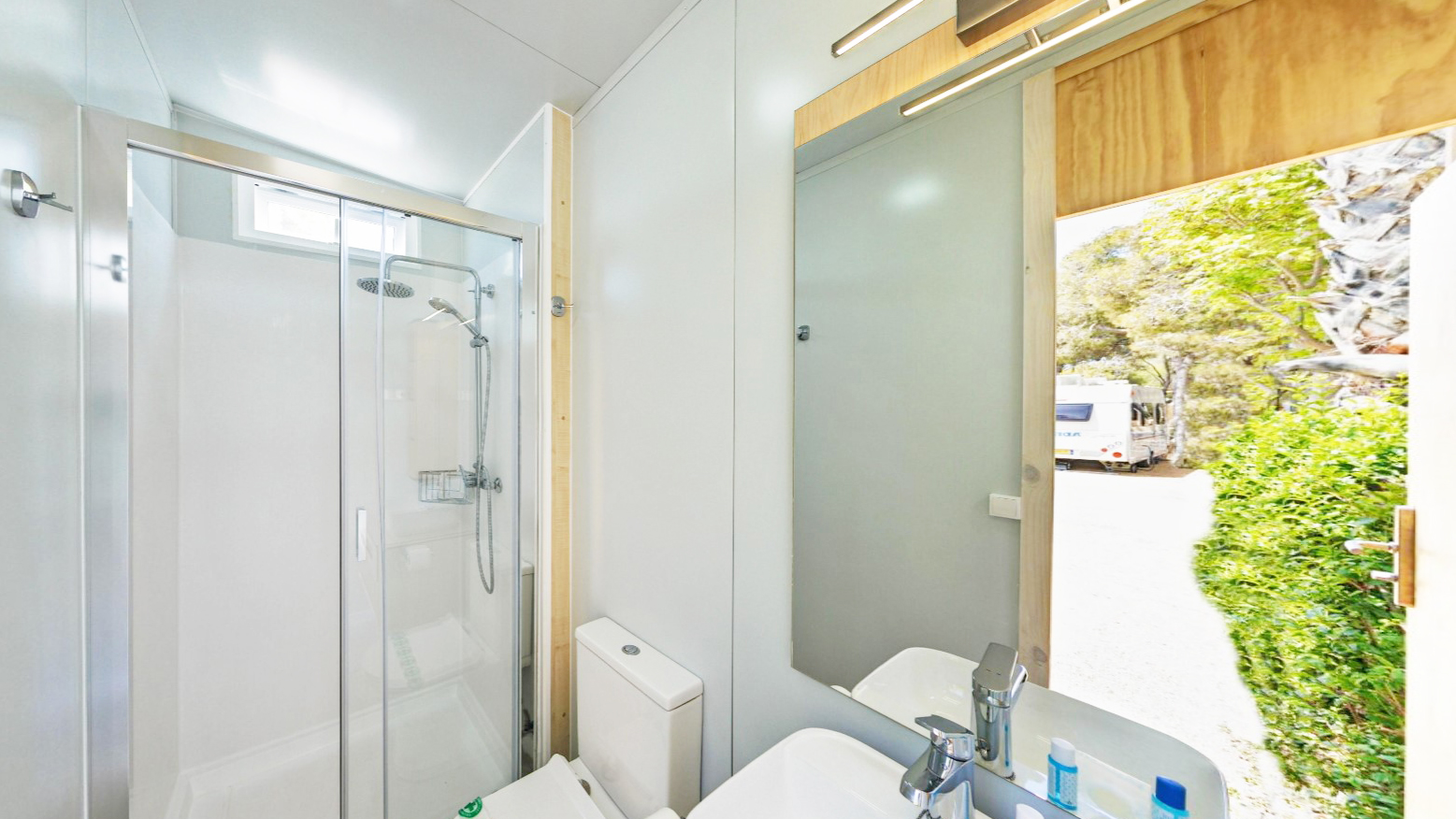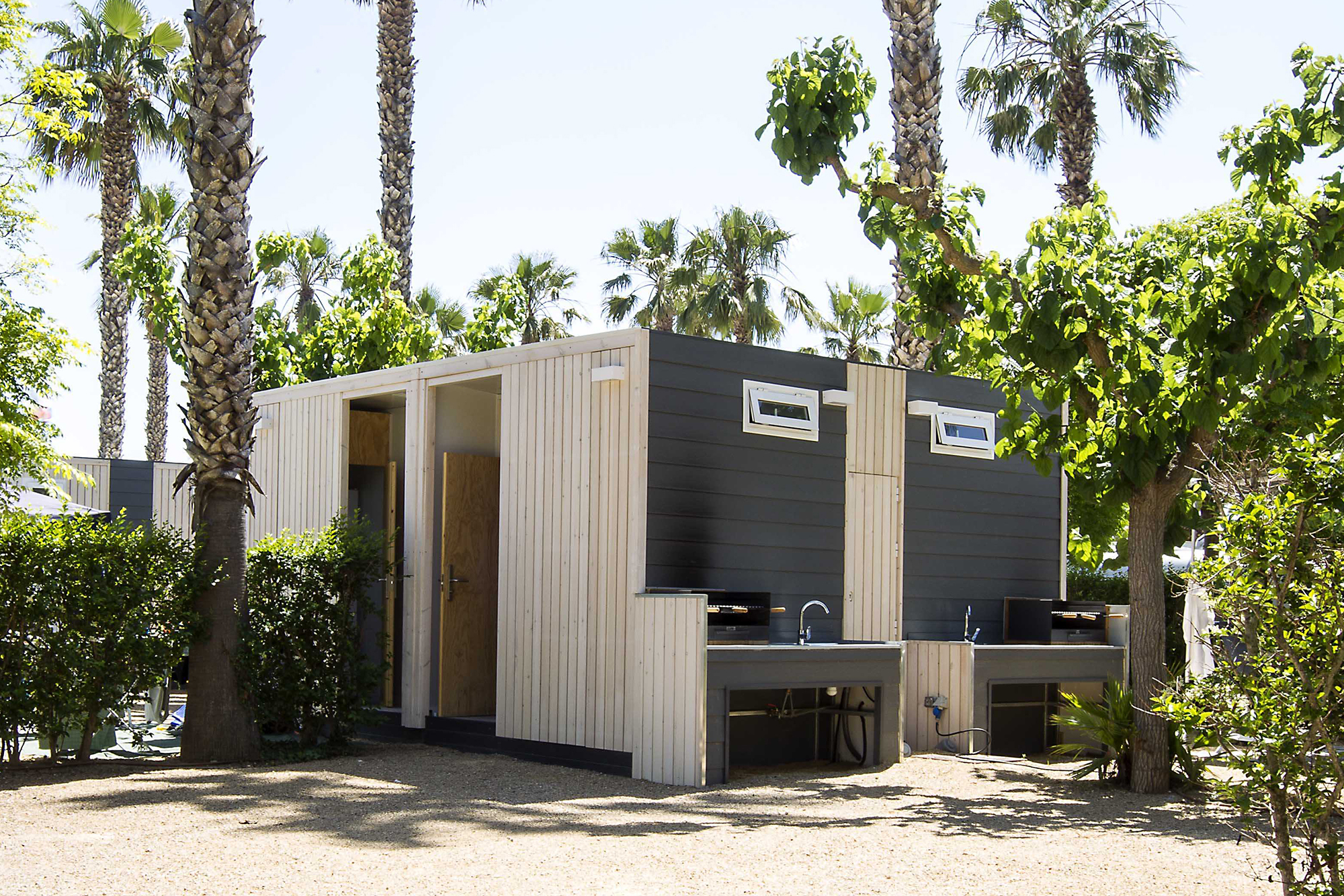 El Proyecto Baños surge ante la necesidad de contar con parcelas premium dentro de su oferta para los campistas. Se trata de módulos que cuentan dan a la parcela las comodidades de contar con su propio baño privado, además de contar con zona de frigorífico combi grande, fregadero y barbacoa exterior.