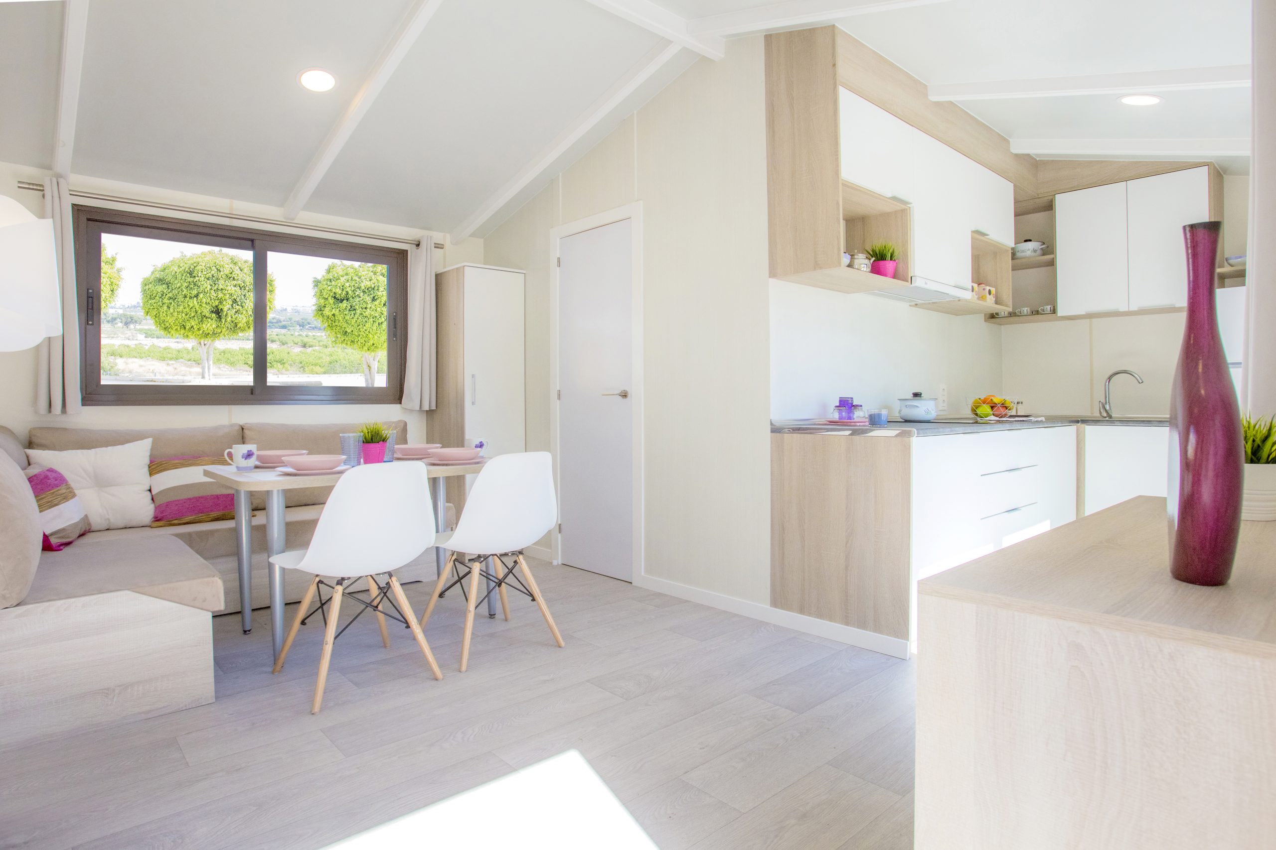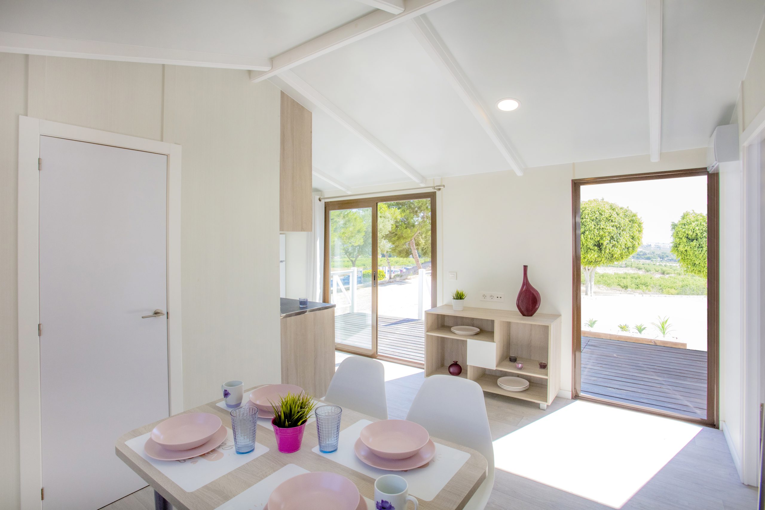 Las casas móviles tienen un diseño moderno tanto interior como exteriormente y están diseñadas para proporcionar un alto nivel de confort. Incluyen mobiliario y equipamiento completo, ofreciendo una experiencia similar a la de un hotel pero sin renunciar a la tranquilidad de la naturaleza. Además, todas ellas cuentan con aislamiento térmico y sistemas de climatización que garantizan una estancia cómoda en cualquier época del año.