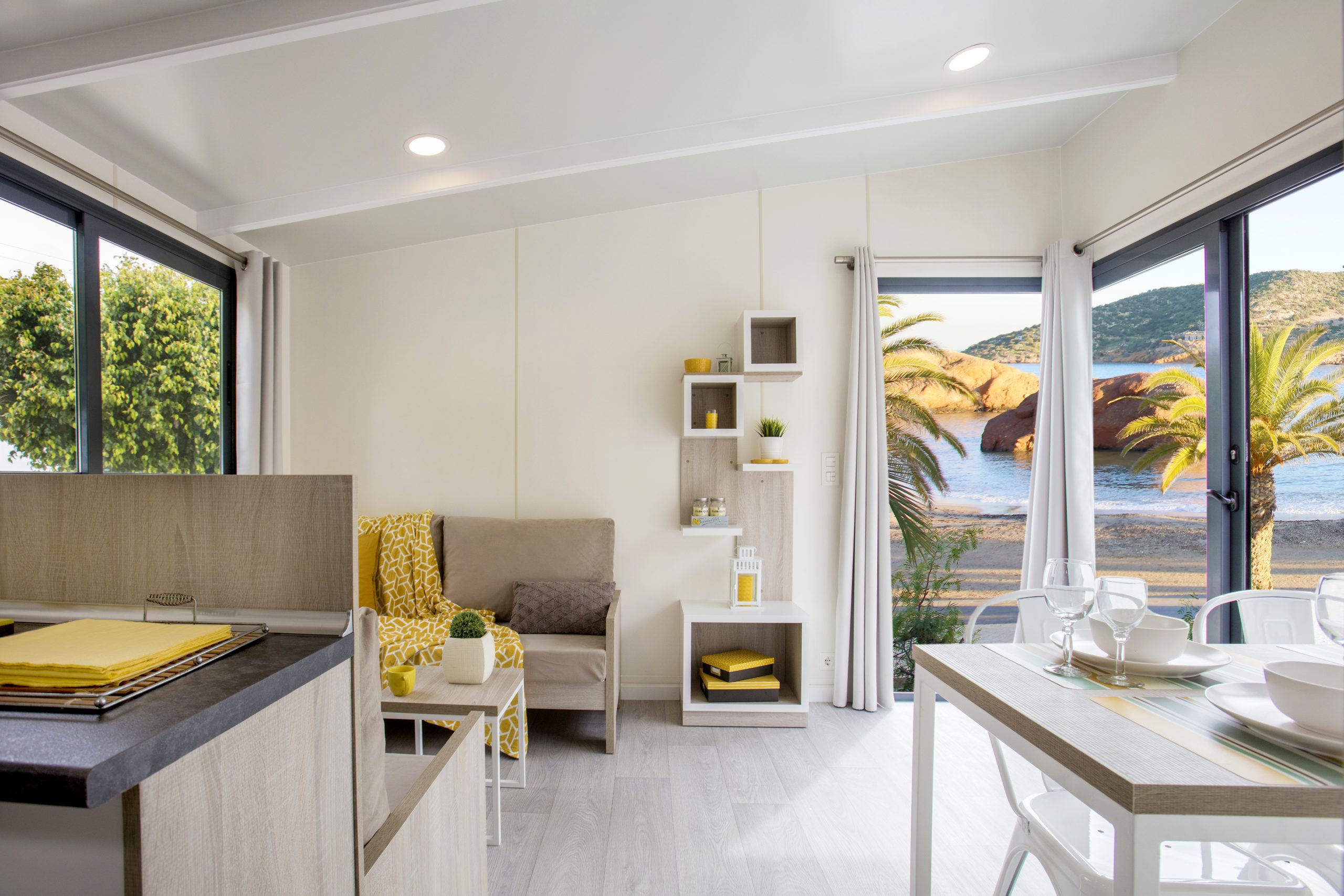 Este modelo dispone de todo lo necesario para deleitarse en unas perfectas vacaciones. Su espacio interior está optimizado al máximo. Todas las estancias son de grandes dimensiones, permitiendo al usuario disfrutar de este mobile home con la máxima rentabilidad.