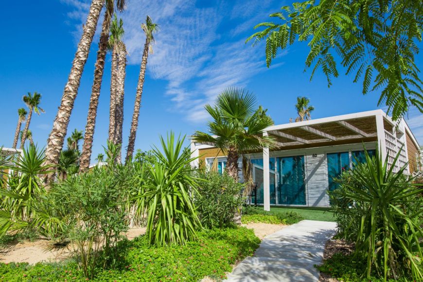El proyecto Cocoa se llevó a cabo en el resort de Alannia Costa Blanca, en Crevillente (Alicante). Un mobile home que destaca por la gran cantidad de ventanales que cuenta en todo su frontal.