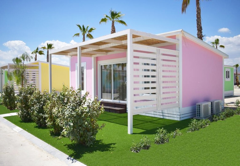 El modelo Habana se llevó a cabo en el resort de Alannia Costa Blanca, en Crevillente (Alicante). Un proyecto que destaca por su variedad de color con acabados en rosa, verde, azul y amarillo, pero también lleno de color en su interior, que transporta a todos sus huéspedes a La Habana.