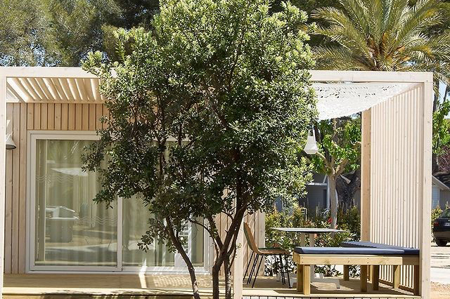 El proyecto Laurus cuenta con un enfoque de naturaleza. Sus tonalidades claras hacen que contraste la vegetación que los envuelve y crea un oasis en mitad del resort.  El bungalow Laurus cuenta con un único dormitorio, enfocado a parejas. O bien, familias con niños que podrán dormir en su cómodo sofá-cama doble.