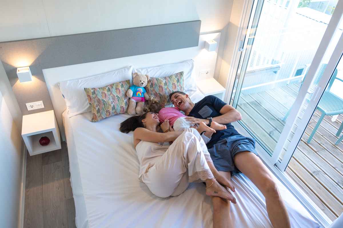 El modelo Leo es un modelo con una gran zona común central que divide las dos estancias con las que cuenta esta distribución. Además, cada una de setas estancias está equipada con un baño privado. Algunos de estos modelos están ubicados encima de terrazas elevadas que aseguran unas vistas únicas al mar.