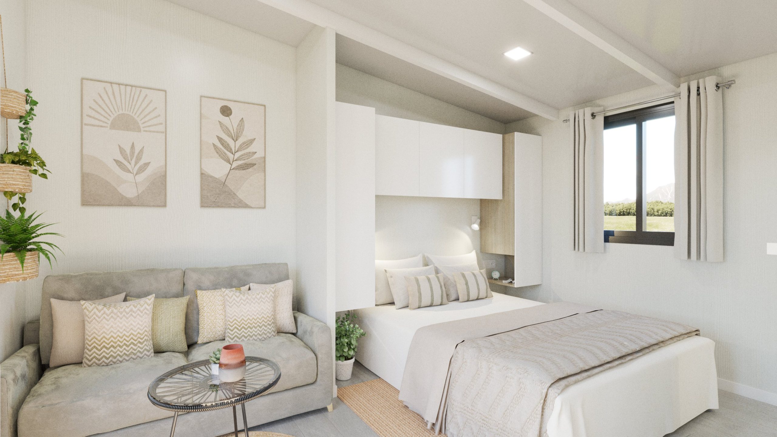 Su exterior se puede adaptar a la estética que más encaje con el concepto de alojamiento, ya sea a una o dos aguas, o el color de su revestimiento exterior. En el interior, cada estancia cuenta con un equipamiento individual para asegurar la mejor experiencia del huésped, pudiendo este ser complementado acorde a las necesidades de cada camping.