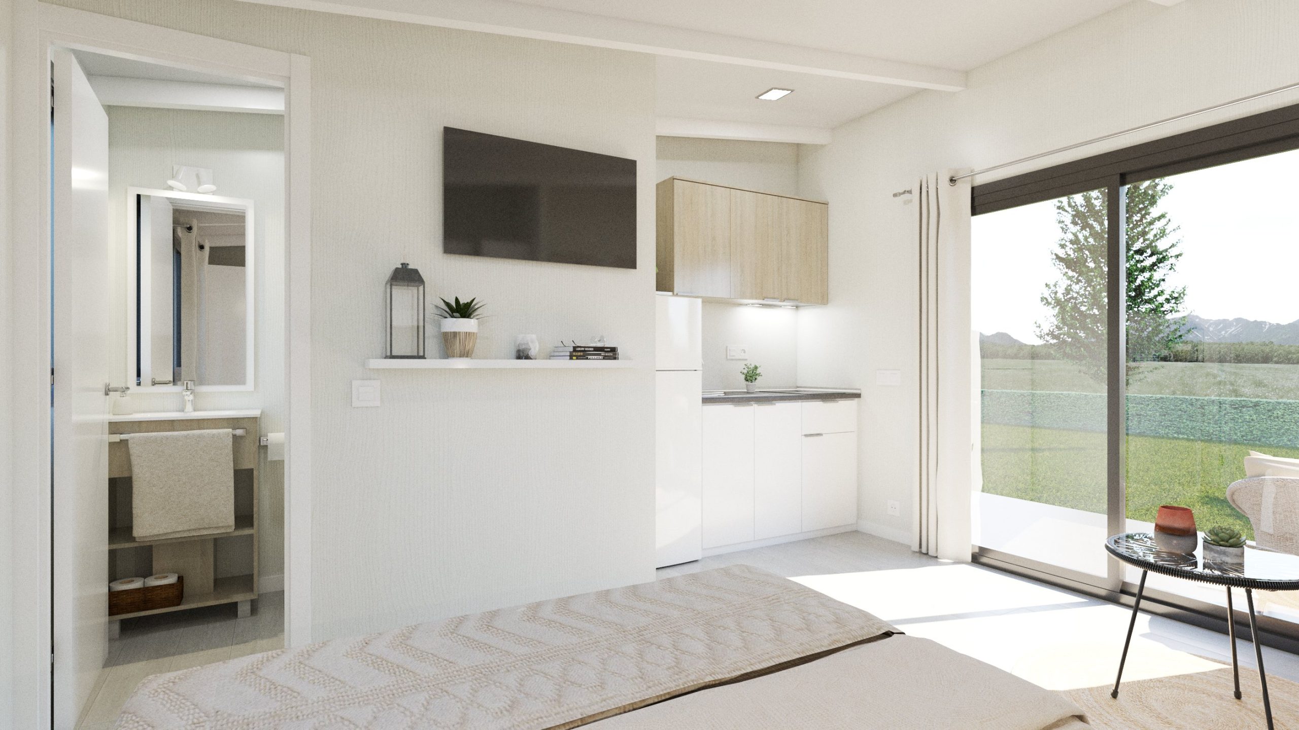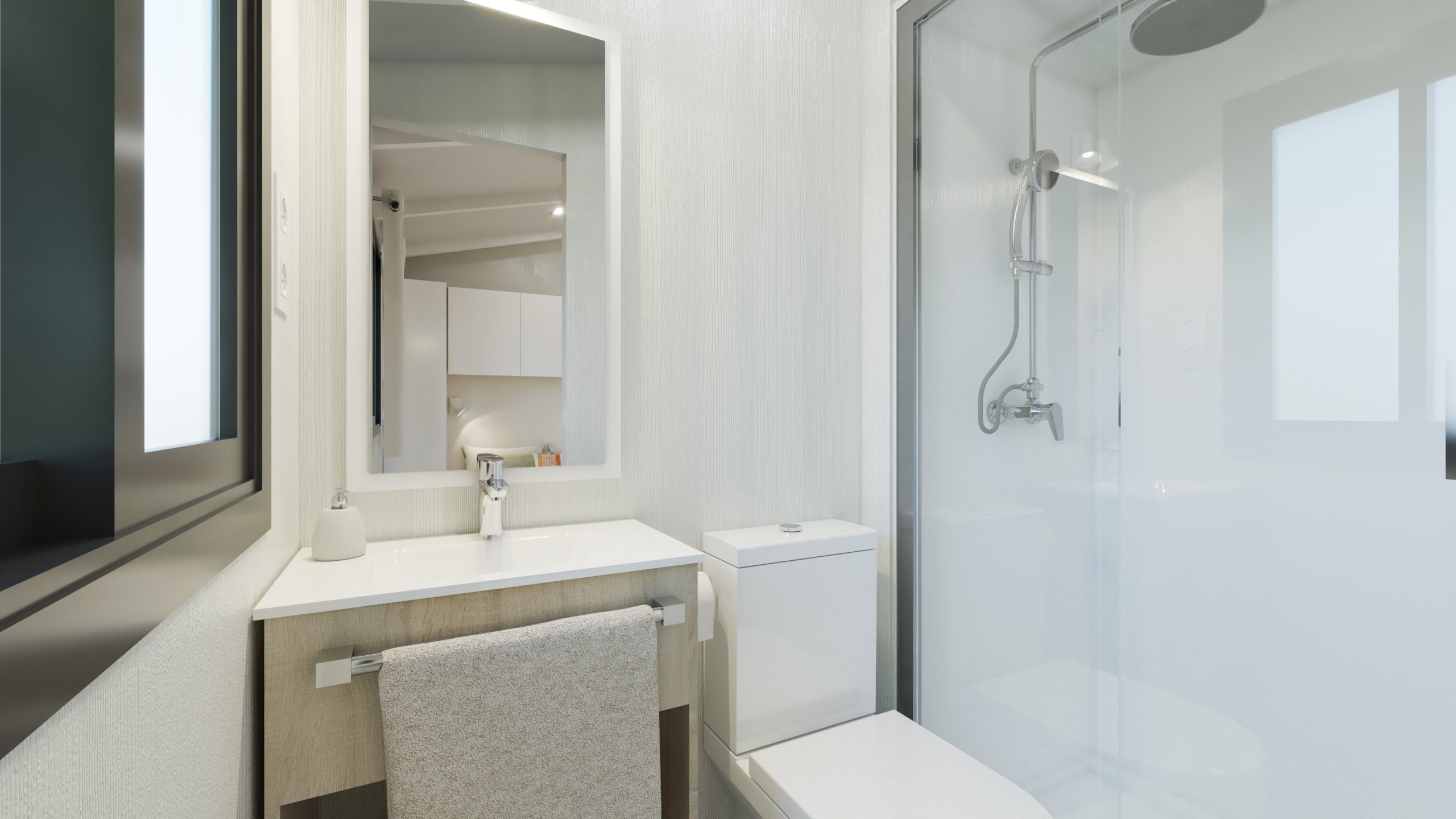 El modelo Suite 2DC destaca por contar con dos estancias individuales totalmente equipadas cada una de ellas. Gracias a su distribución y diseño, cuenta con gran versatilidad a la hora de acoger a distintos estilos de familias.