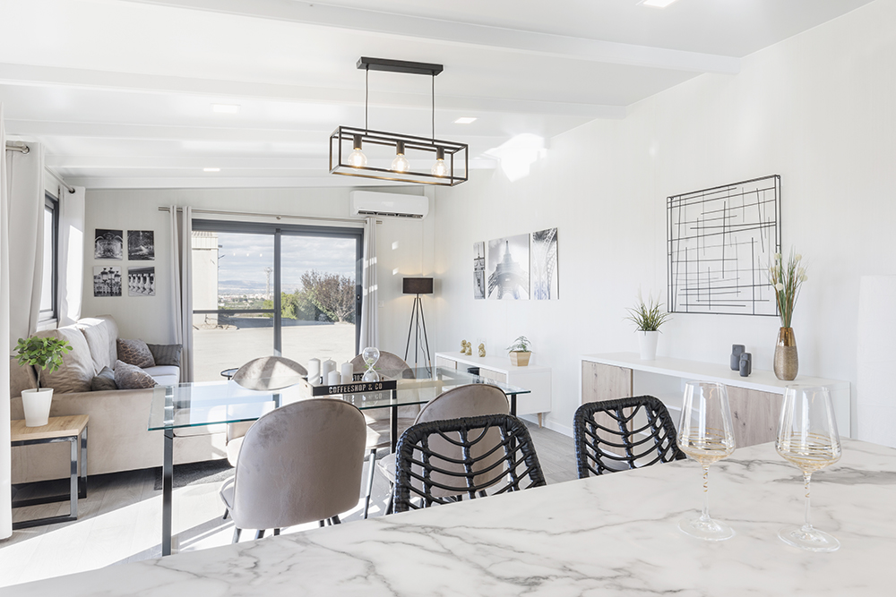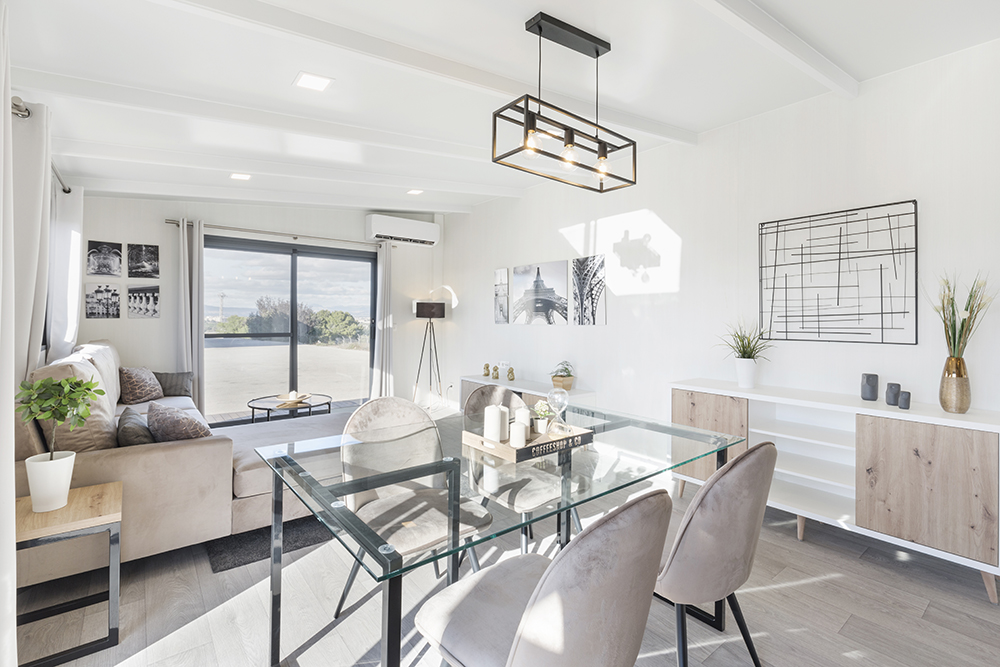 Su excelente aislamiento térmico y acústico, combinado con materiales de alta calidad, garantizan una vivienda prefabricada eficiente y cómoda en cualquier estación del año. Con el modelo VIENA de Alucasa, disfrutarás de un hogar