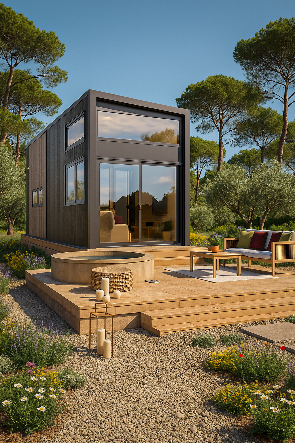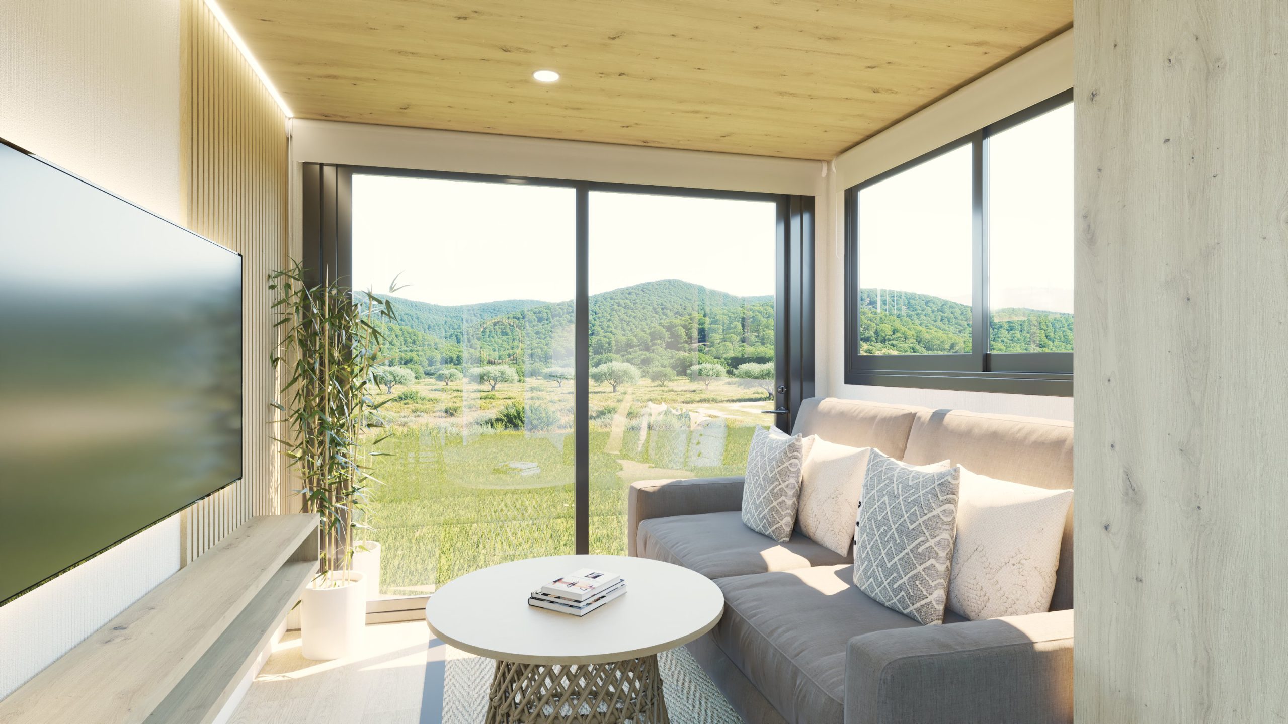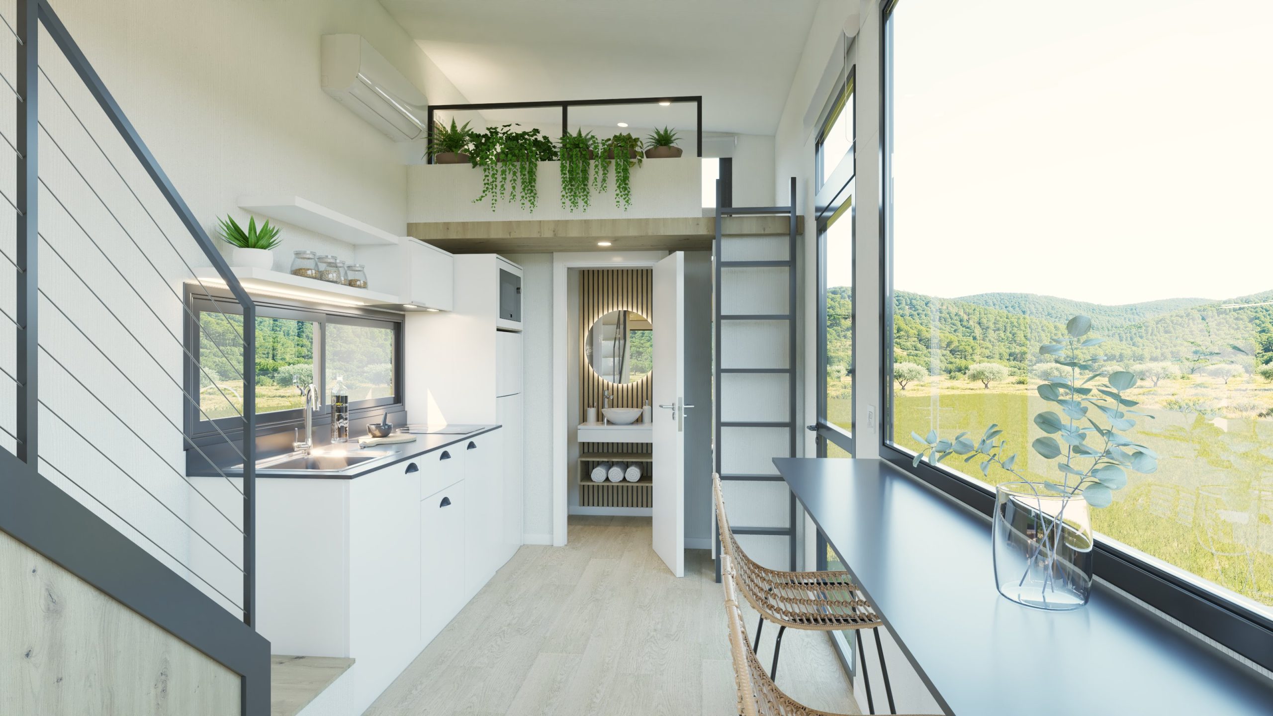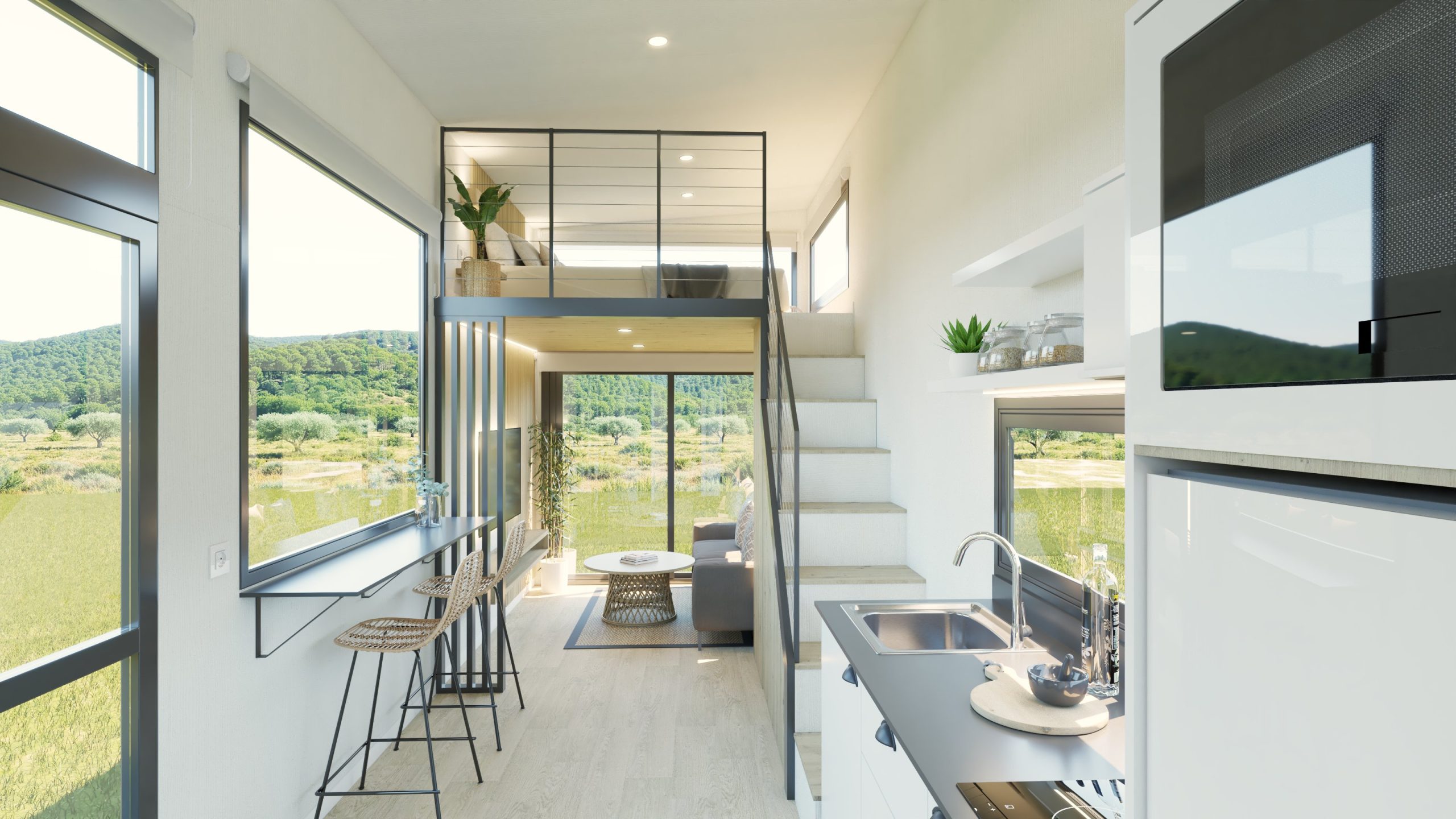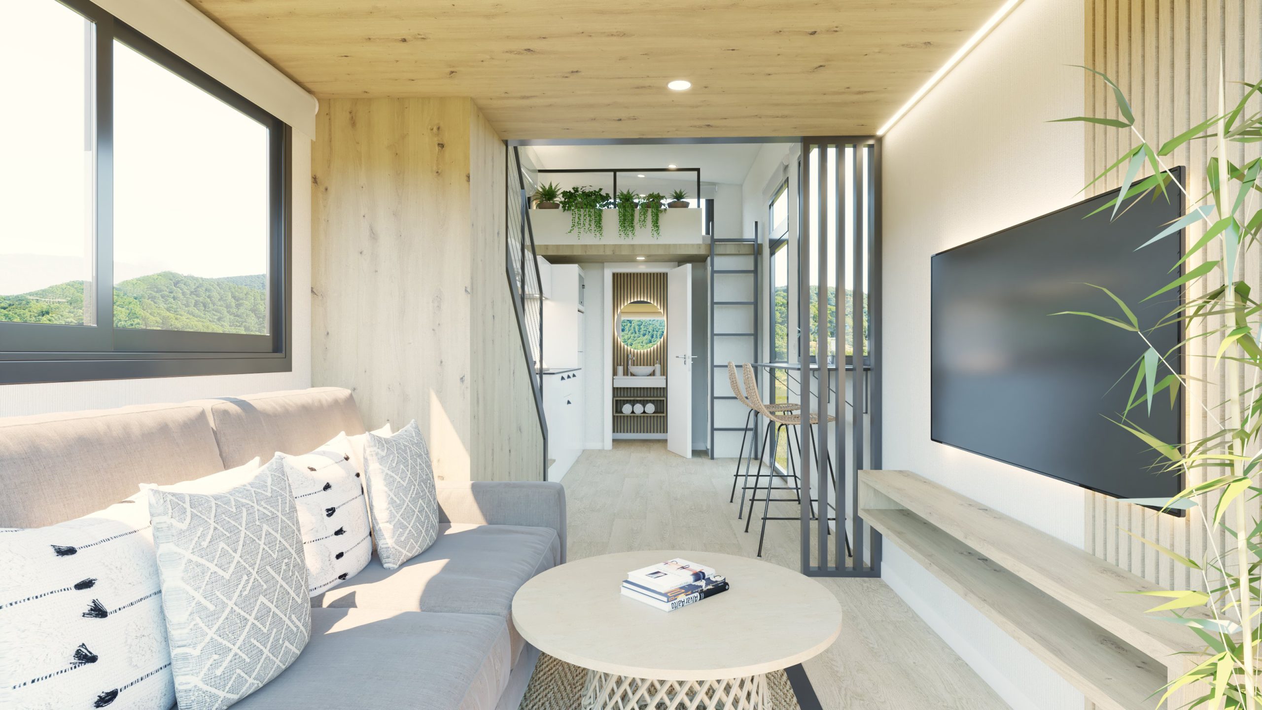 La Tiny Home LUMA redefine el concepto de vivienda compacta con una estética minimalista y contemporánea que combina elegancia, funcionalidad y calidez. Su diseño destaca por una paleta neutra que potencia la luz natural y genera una sensación de amplitud serena.