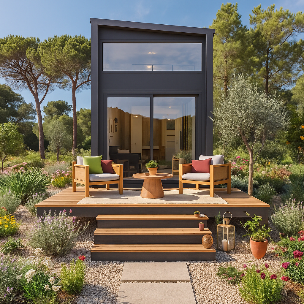 Esta mobil home pequeña se distingue por su diseño arquitectónico en altura, que permite aprovechar el espacio interior sin sacrificar movilidad ni funcionalidad. Gracias a sus materiales ligeros y resistentes, es fácilmente transportable y se adapta a diferentes ubicaciones sin renunciar al confort ni al estilo. La eficiencia de su aislamiento y su ventilación natural la hacen ideal para climas diversos.
